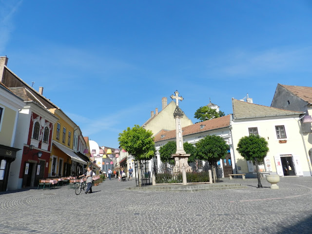 Die zweite Nacht war etwas besser als die erste, trotzdem waren wir halb acht auf. Noch einmal unter die Dusche springen und alles im Auto verstauen, ehe wir uns verabschiedeten und den Grummel in der Nähe vom Bahnhof parkten. Wir wollten noch einmal mit der HEV fahren, diesmal nur zwei Stationen von Pomaz nach Szentendre. Dieses Städtchen hatte Axel in einem Reiseblog entdeckt und wenn man schonmal hier ist, kann man sich es auch ansehen. Viel zu zeitig waren wir da, es hatte noch alles zu. Das hatte aber den schlagenden Vorteil, dass wir fast alleine dort waren. Wir schlumperten durch die wirklich malerischen Gassen hinauf zur ältesten der sieben Kirchen und hatten von oben einen schönen Blick auf die roten Dächer und die anderen Kirchen.  |